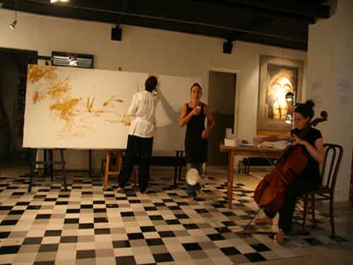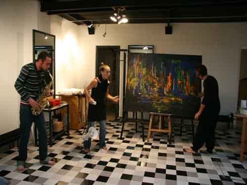 3 times performance (improvisation) with two musicians : Aela GOUVERNEC Marie Rubens and Antoine in the Galerie-L’Atelier and 1 with visual artists: Marie Jeanin, Martha Martinez, LAFABE and Frédérique CUEILLE LAURENT.